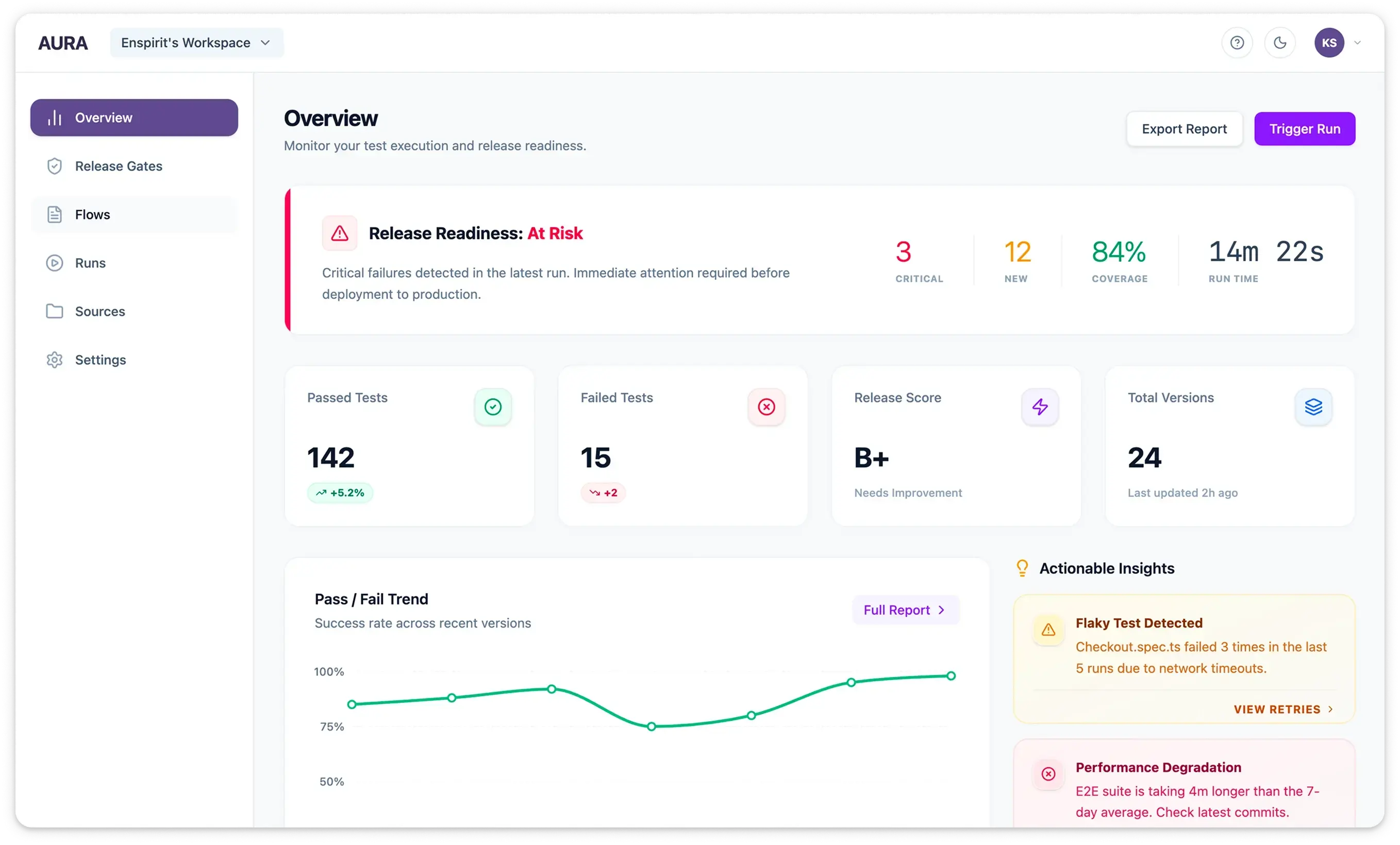 AURA is our AI-orchestrated Release Confidence platform for engineering and QA teams who need objective signals, not just test results.