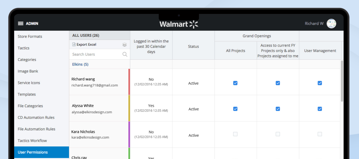 The system managed the full review and approval workflow across internal teams and external agencies. Once a store opened, the platform automatically triggered the transition to post-opening creative assets and distributed updated instructions to the relevant production teams. Multiple reports and administrative tools were added and evolved over the course of the engagement.