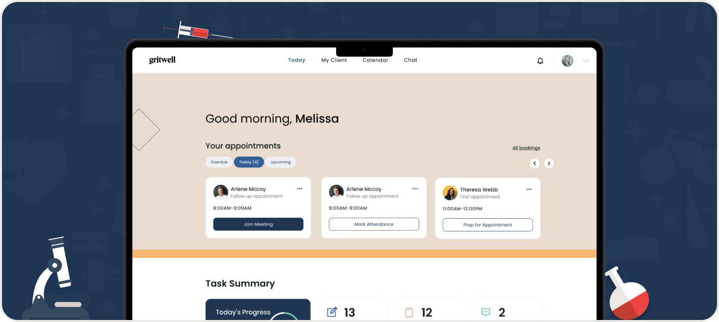 Gritwell is a virtual health clinic built to deliver better care. But as a startup, their operations had not caught up to their ambition: email-only coordination, client records buried in Google Docs, and no way to track follow-ups or todos across the care team.