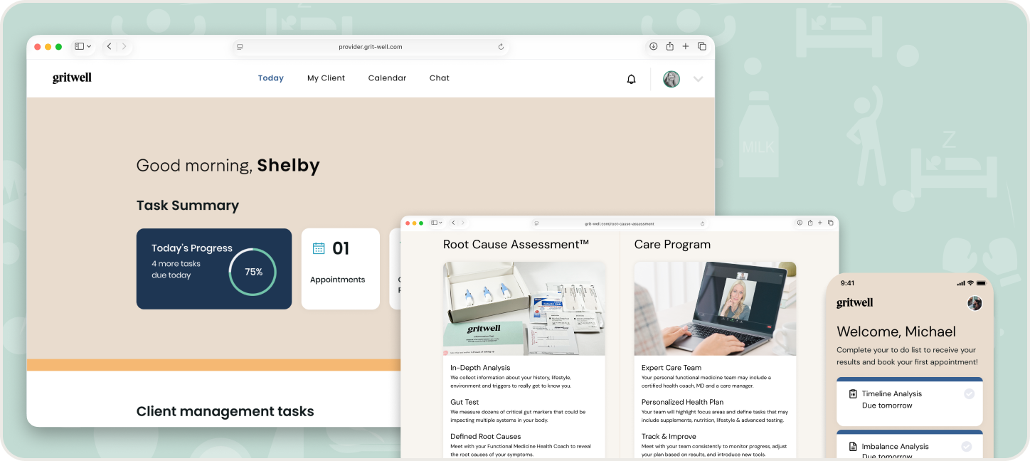 Gritwell needed a wellness platform that could handle patient intake, provider scheduling, treatment tracking, and real-time connectivity across web, mobile, and PWA. We built it in 4 months. They raised $3M after launch.